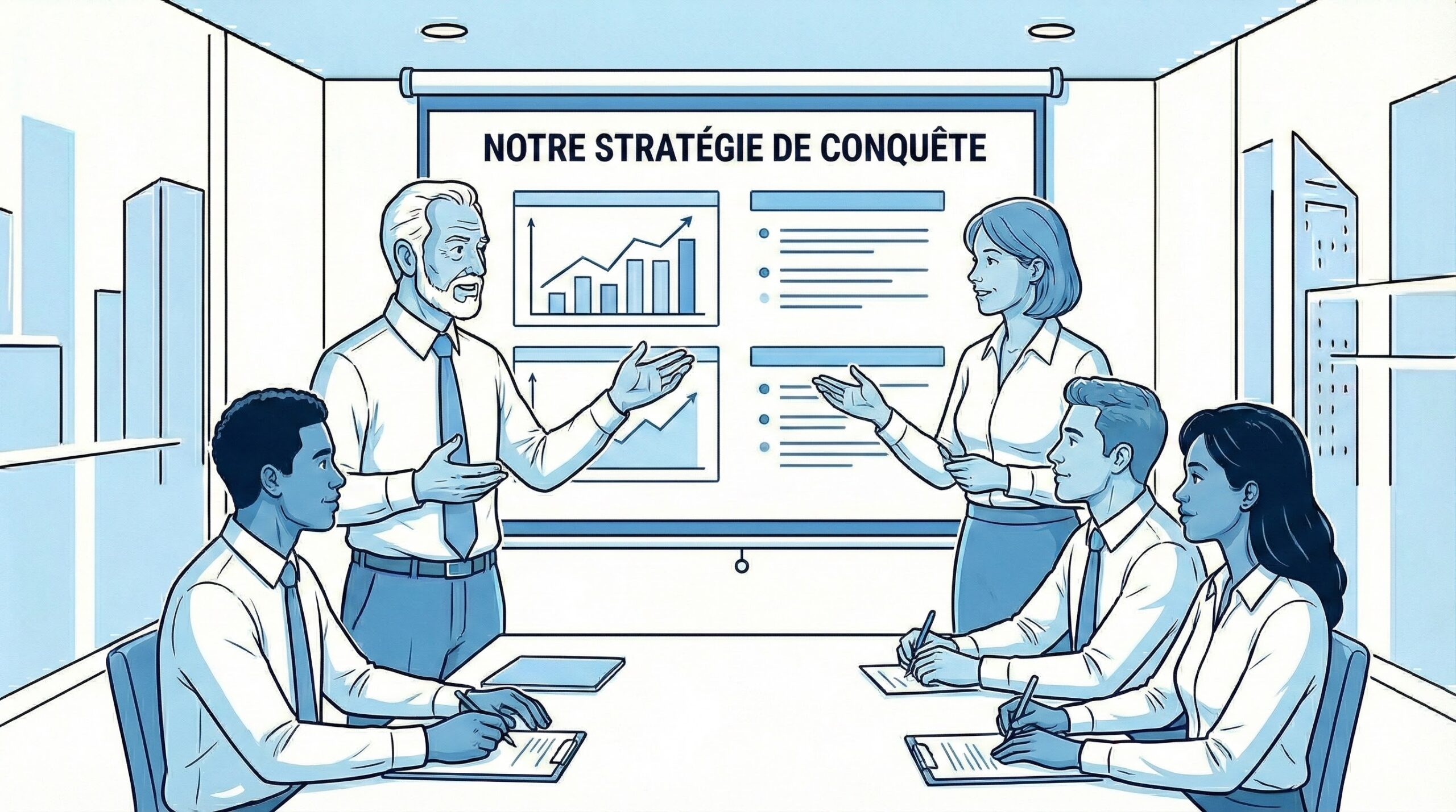 Nous ne faisons pas « à votre place », nous faisons « avec vous ». Contrairement aux cabinets qui livrent un rapport et repartent, nous agissons comme des coachs stratégiques. Nous vous apportons la méthode et la rigueur, mais c’est votre équipe qui construit le plan. Résultat : une appropriation totale et une montée en compétence durable de votre CODIR.
